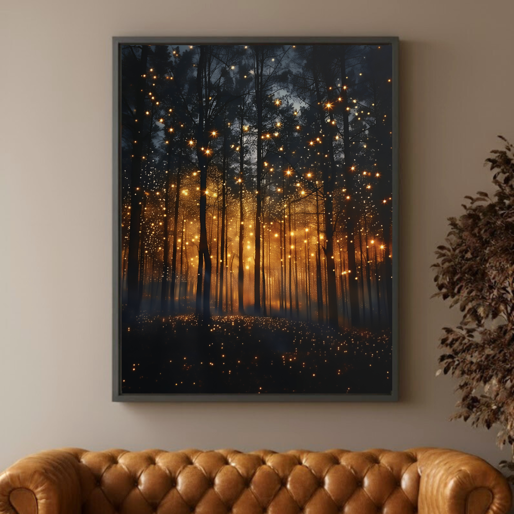 Designed for lovers of dark, atmospheric décor, this artwork blends magical forest tones with modern elegance—an effortless way to transform your walls into a calming, story-filled escape.