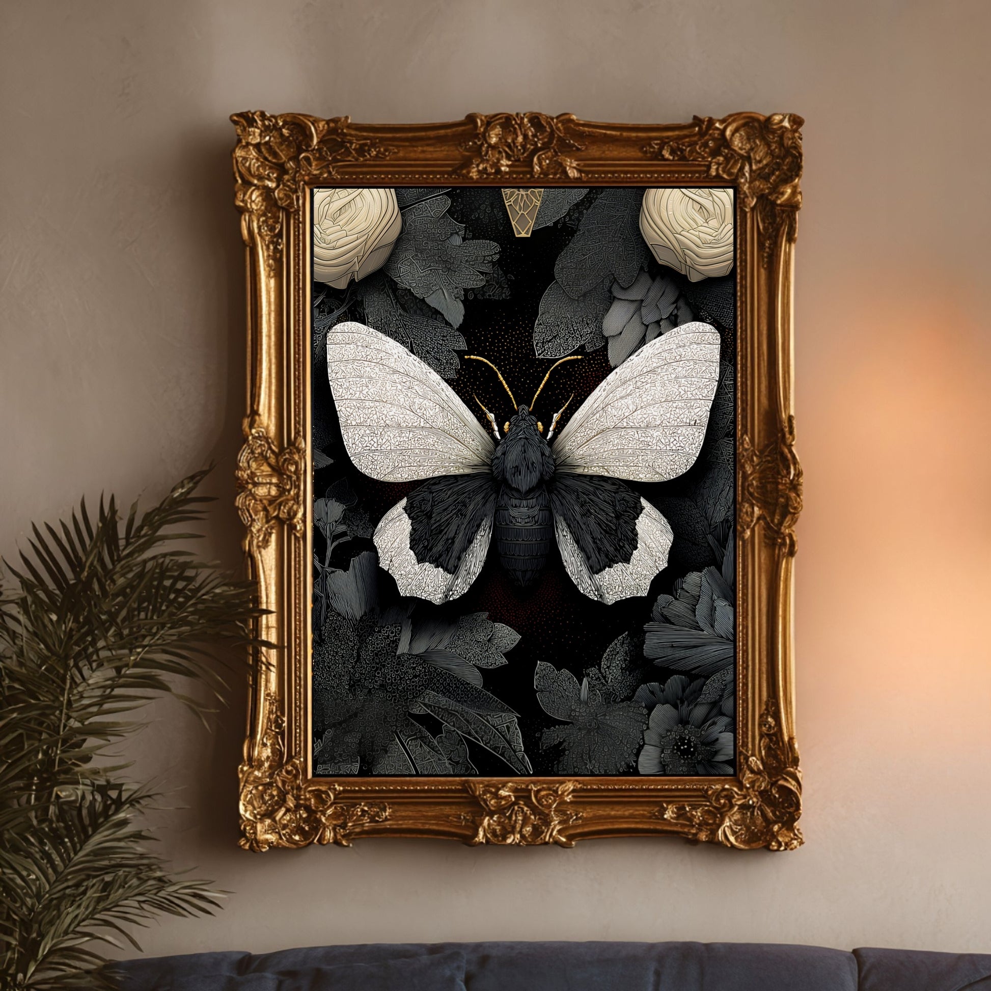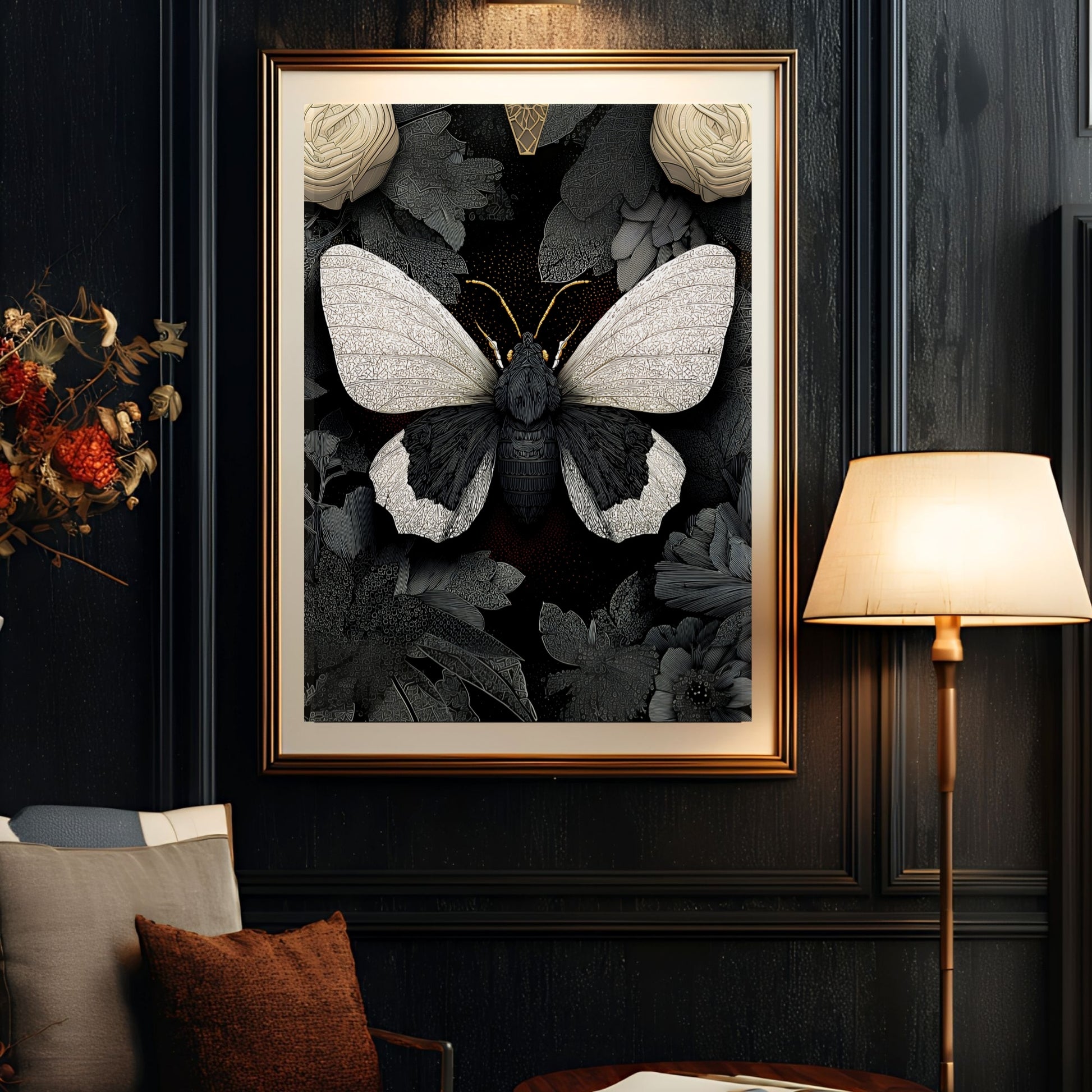Discover the captivating beauty of nature with our Black and White Moth Wall Art, a stunning butterfly print featuring dark, moody flowers that bring Victorian gothic charm to any space. Designed for maximalist homes and lovers of vintage, moody aesthetics, this artwork seamlessly blends dramatic black and white tones with intricate insect and floral details, creating a bold statement piece that sparks curiosity and admiration.