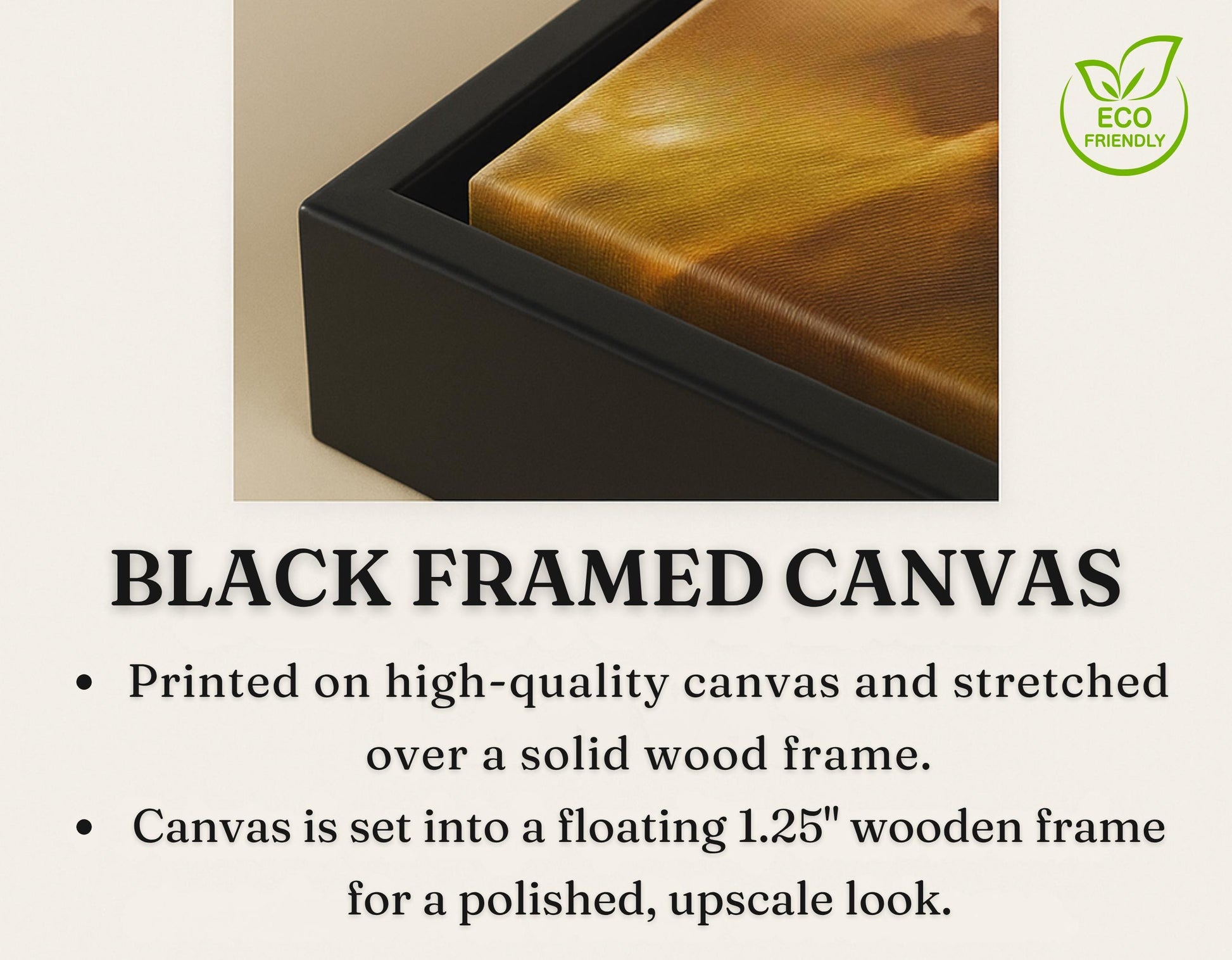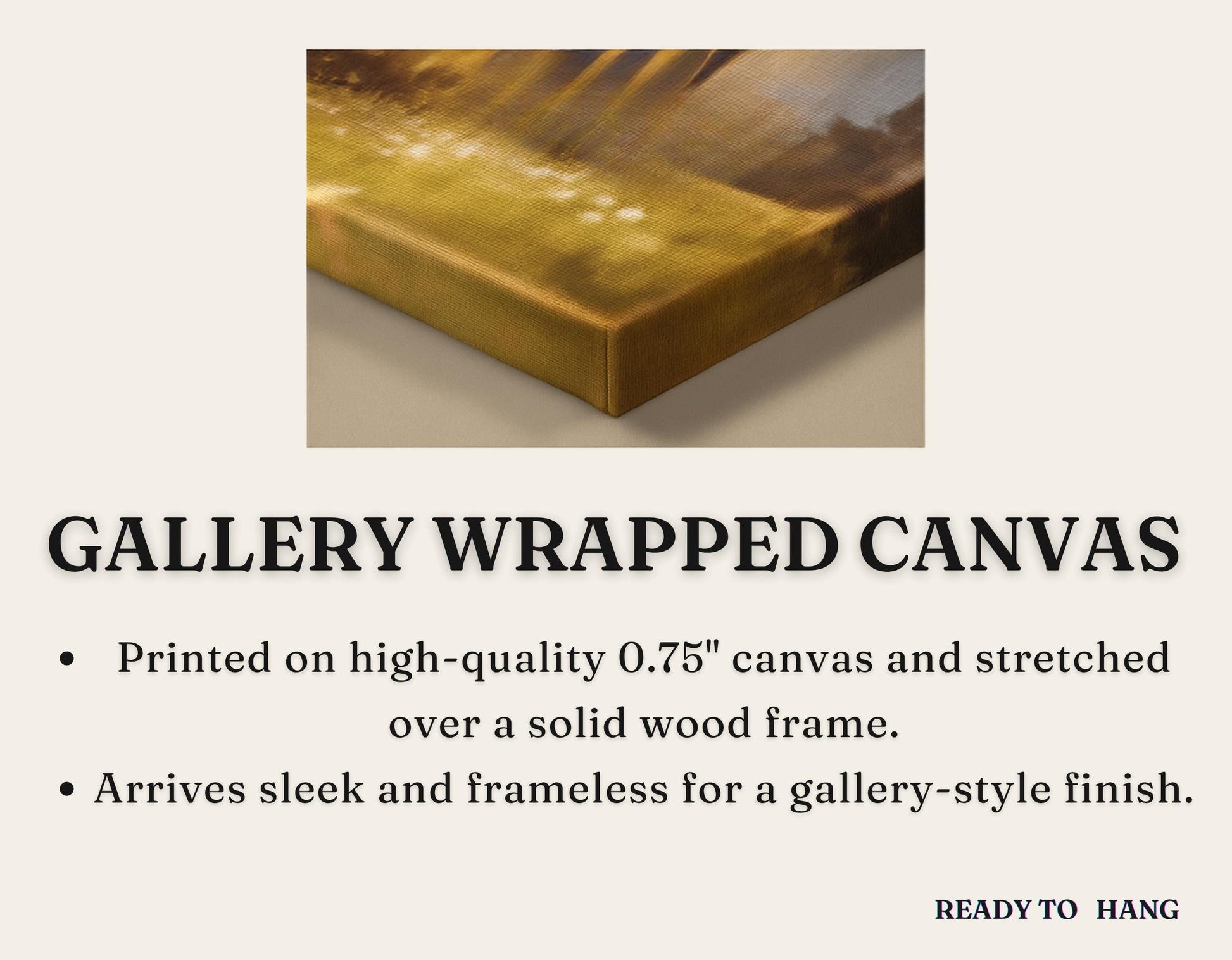 - Pinewood framed canvas with 1.25" depth, featuring the same high-quality canvas and inks, ready to hang immediately