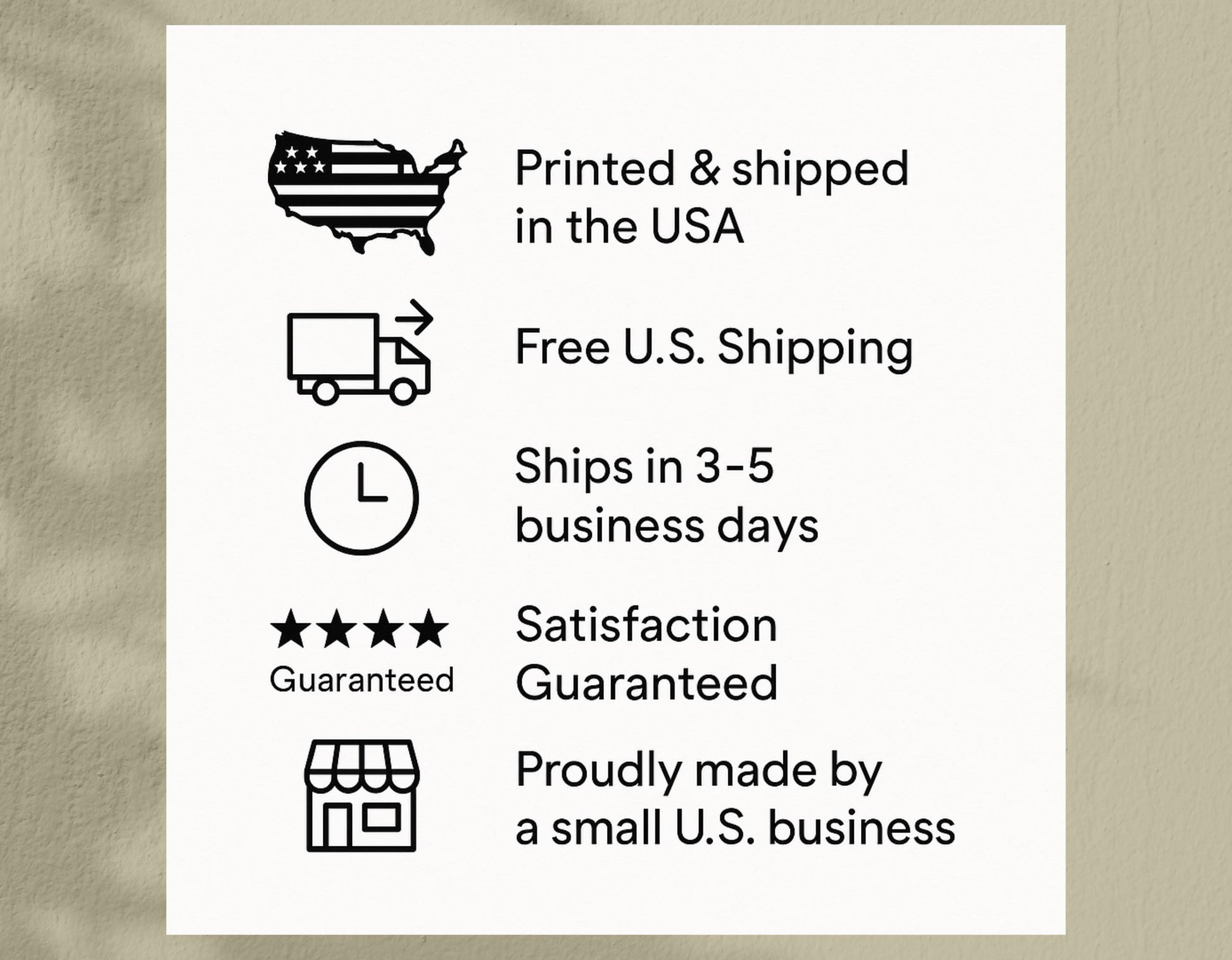 Our prints ship from the USA within 3-5 business days and are carefully packaged to arrive in perfect condition. Customer satisfaction is paramount; if you are not fully happy with your purchase, please contact us for returns or refunds.