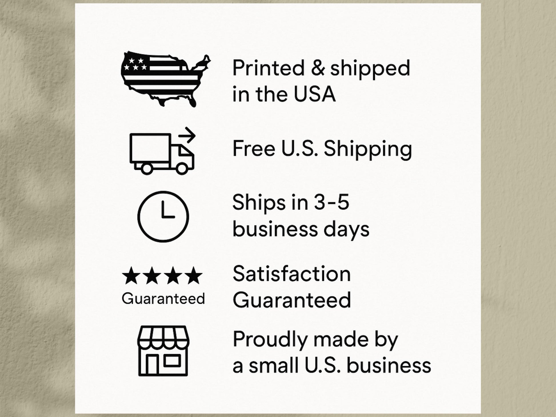 Please note that colors may vary slightly due to different monitor settings but rest assured each print undergoes rigorous quality checks before shipping. Orders ship from the USA within 5 business days and are carefully packaged to ensure safe delivery.