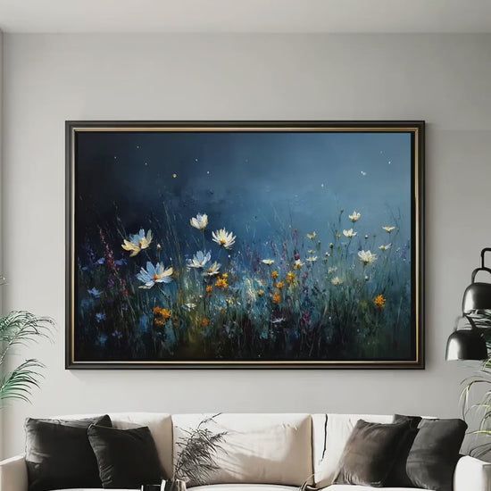 Starry Night Wall Art – Wildflower Canvas With Magical Floral Print, Boho Decor